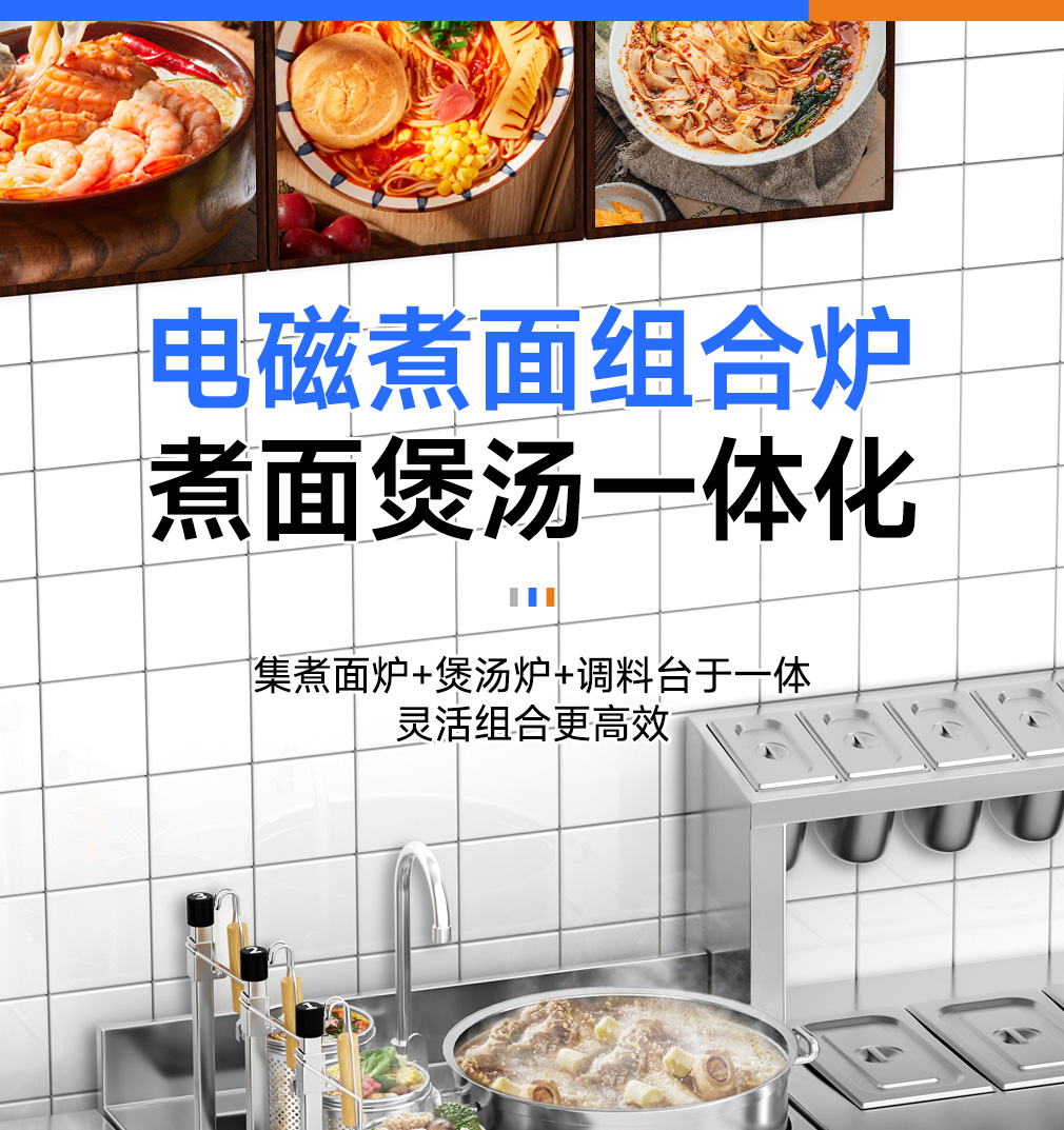 6頭煮面爐+Φ30CM雙頭湯爐+3格調料臺